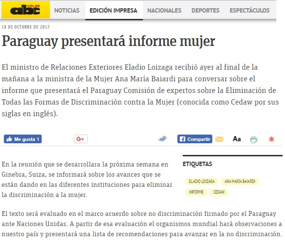 Paraguay presentará informe mujer